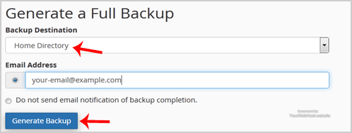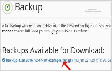 After the cPanel backup is completed, you will receive notification and the backup will be available for download under the "Backups Available for Download" list on the Full backup page.