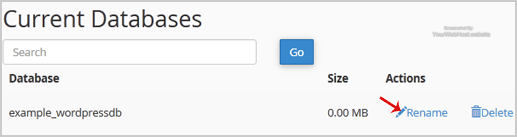 3. Under "Current Databases", You can see list of your all databases. Locate the Database and then click on "Rename" Icon.