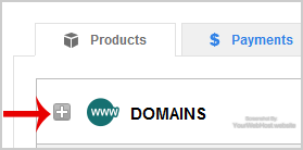 3. After a successful login, click on the + (plus) icon next to Domains in the "Products" tab.