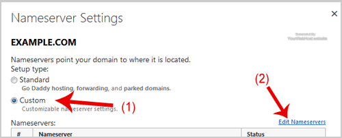 6. In "Nameservers Settings", select "Custom" and then click on the "Edit Nameservers" Link.