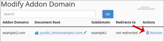 3. Locate the addon domain under "Modify Addon Domain" and then click on the "Remove" link.