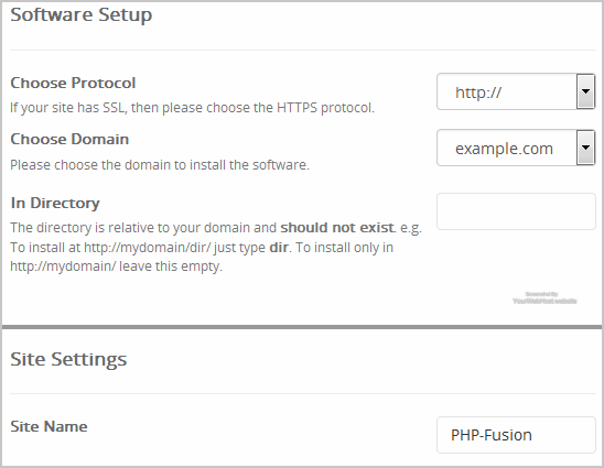 • Site Name: Enter the name of your website, such as "PHP-Fusion".