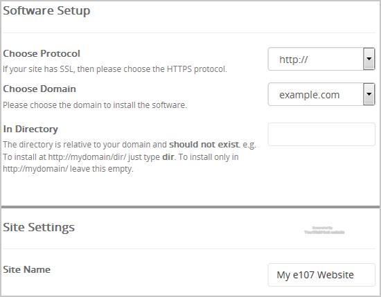 - Site Name: Enter the name of your website, such as "e107".