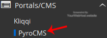 4. On the left side of your screen you should locate the "Portal/CMS" category. Click on it and then click on the "PyroCMS" link that will appear.
