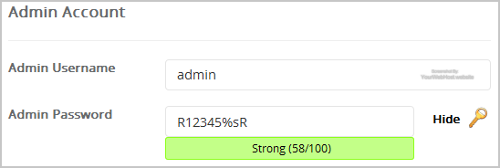 - Admin Username: Your new Fork username (for security reason do not use the "Administrator" or the "Admin" username.)