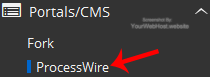 4. On the left side of your screen you should locate the "Portal/CMS" category. Click on it and then click on the "ProcessWire" link that will appear.