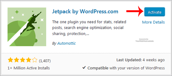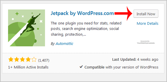 4. The available plugins matching the keyword €œJetpack€ will appear. Click on the €œInstall€ button which appear next to the plugin€™s name.