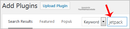3. In the €œSearch Plugin€ box, enter the name of the plugin you wish to install, such as €œJetpack€, and press enter.